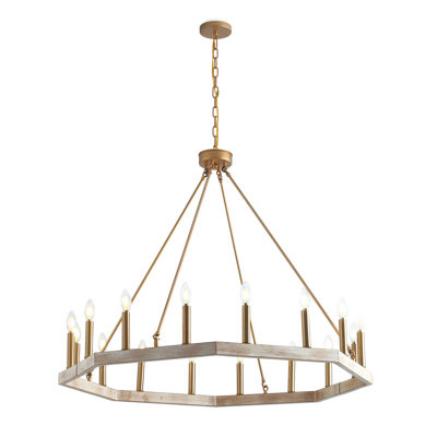 Create an accountThe vintage wagon wheel chandelier is full of allure, it comes with a matt gold high-quality metal body and 16 bulbs base, fully lighting up your house with a retro atmosphere and comfortable feeling.