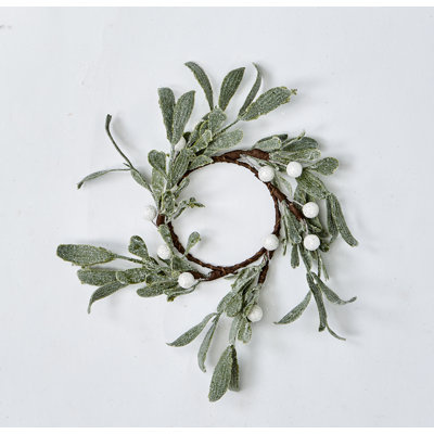Create an accountAdorn your holiday table with this beautiful candle rings. The candle ring features frosted mistletoe and white berries.