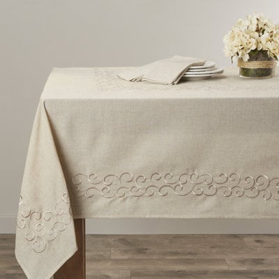Create an accountThis elegant tablecloth brings a refined look to your dining table, whether you're hosting a dinner party or enjoying a quiet meal. Made from a blend of polyester and linen in a natural hue, it combines the practicality of machine washability with a sophisticated design. We love how the subtle scroll detailing along the border gives it that extra little touch. Plus, it's iron safe, so you can keep it looking crisp and fresh for every occasion. Bonus: This rectangular tablecloth comes in a variety of sizes to choose from that best suits your tabletop.