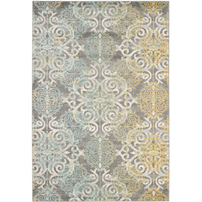 Create an accountThis indoor area rug lights up your space with a colorful palette and swirling boho print. It's power-loomed from a stain-resistant blend of polypropylene, jute, polyester, and cotton. The design features large-scale white scrollwork on a gray background, the overlay is a smaller version in a gradient of playful yellow, greens, and blues. The medium 0.37'' pile height means this area rug provides cushion but is still a breeze to vacuum. Pair it with a rug pad to keep it in place underfoot in your living room or home office.