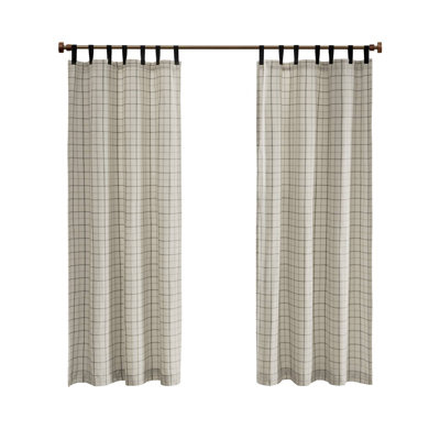 Anaheim Plaid Faux Leather Tab Top Single Curtain Panel with Fleece Lining