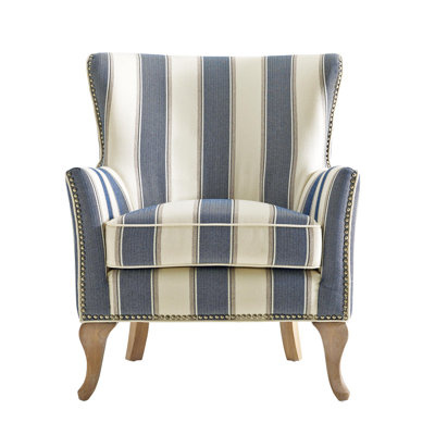 Create an accountThis armchair features a classic nautical striped pattern and nailhead trim for the right coastal farmhouse look in your living room. It's crafted with a solid and engineered wood frame that sits on cabriole legs with an ash finish. We love how its curved silhouette and flared arms make a style statement in any room. This chair is wrapped in a polyester blend, and the seat is filled with foam and sinuous springs to support you as you relax. Plus, its seat cushions are removable, so it's a cinch to vacuum up those inevitable crumbs.