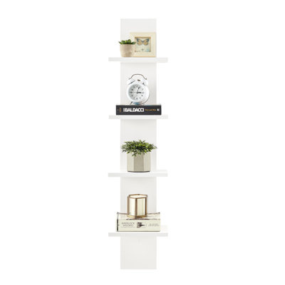 Create an accountDiscover the Ebern Designs. Arica 4-tier column wall shelving – a versatile and space-efficient storage solution for compact areas. Featuring a sleek contemporary finish, this shelving unit makes for the perfect accent piece in any living space. Its low-profile design allows for seamless integration into any room, offering an excellent way to neatly arrange and showcase small items. This compact shelf unit also makes it an ideal organization solution for small spaces like apartments or hallways. Combine multiple shelves to infuse your walls with eye-catching aesthetics while optimizing limited or narrow spaces.