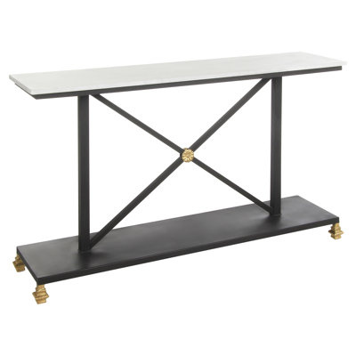 Create an accountBlending art and functionality to striking effect, this modern console delivers a bold, contrasting finish with a dark base and supports and a white tabletop. Golden accents in the X-brace and at each foot add a touch of warmth and sophistication.