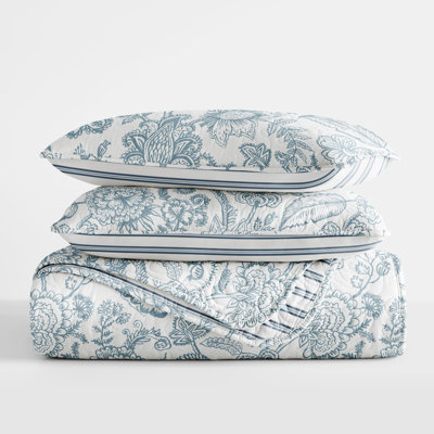 Create an accountThis plush quilt set instantly refreshes your bedroom or guest room with a vibrant and traditional floral paisley design. Each bedding set includes a quilted coverlet and pillow shams, and each matching piece showcases curving branches and large blooming flowers in crisp hues of white and dusk blue. Plus, it reverses to a soft stripe design whenever you want a quick style switch-up. This set is crafted from microfiber, which is machine washable and tumble-dryable when it comes time for a quick cleanup. We also love that the quilt is filled with alternatives for plenty of cushioning, yet all-season,