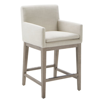 Create an accountElevate your dining table or kitchen island setup with our upholstered counter stool. Clean-lined and crafted with a natural wood finish, it shows off dynamic variations in graining for an earthy, authentic look that we love. The seat and back are wrapped in a neutral-toned fabric and generously padded with foam and cotton for lots of cushioning. Low-profile square arms and slightly tapered legs complete the design, while a built-in footrest makes it easy to linger over coffee and dessert.