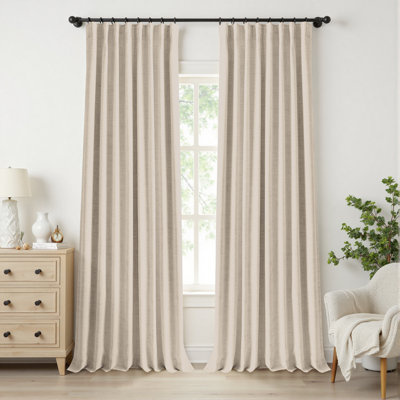 Create an accountCreate a calm, comfortable space with these performance-driven 100% blackout curtains. They combine full light blocking, noise reduction, and thermal insulation with a smooth faux linen finish that elevates any room. Ideal for bedrooms, living areas, or media rooms, they keep interiors dark, quiet, and energy-efficient year-round. We love that they include multiple hanging options and clip rings for a versatile, custom fit.