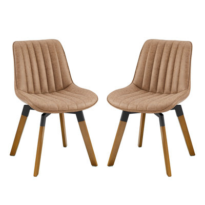 Create an accountArriving as a 2-piece set, this upholstered side chair is ready for you to move between conversations and your favorite snacks at your next dinner party. It has a solid wood frame that rests on four angled metal legs that come in a two-tone finish of black and brown for a bold vintage-inspired look. The seat and back are wrapped in textured faux leather and padded with foam for just the right amount of support. Vertical channel tufting heightens the retro factor, and it swivels for ease of movement. Each chair in this set accommodates 265 lbs.
