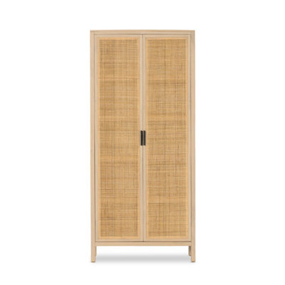Create an accountThe encases textural cane doors which open to reveal generous interior storage. A simple Boudreau-style base keeps things open and airy.