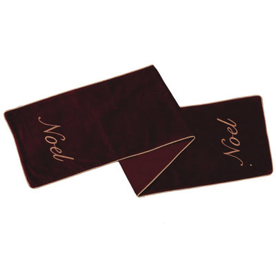 Create an accountDoes your dining room tablecloth feel like it's missing something for Christmas dinner? This table runner is the perfect addition to any festive tablescape! It's made in India from velvet in an elegant burgundy hue and is fully lined with cotton fabric. This runner is piped with golden thread and features the word "Noel" in golden script at each end for a subtle touch. We recommend hand-washing this table runner when it needs a refresh.
