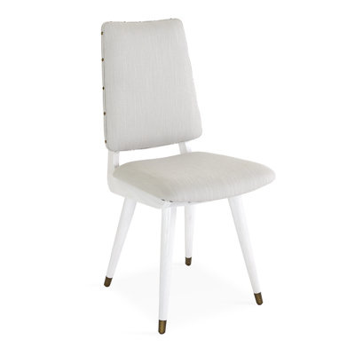Create an accountFeaturing a sculptural wood frame finished with antiqued brass nailheads for French mid-century flair, our Camille Dining Chair is fabulously comfy, but with a slim footprint that's a natural fit in small spaces. Warm up the room with natural wood and inviting flax linen upholstery, or go crisp and cool with white ash wood and icy linen upholstery. Pairs perfectly with our Bond Dining Table.