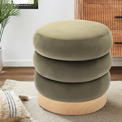 Create an accountThis upholstered ottoman is the perfect spot to prop up your feet after a long day, or for use as additional seating or as a makeshift end table. It has a solid and engineered wood frame that rests on a round base in a natural light brown tone. Plus, it's wrapped in a textured fabric with a padded top. Channel tufting on the sides makes this ottoman resemble a stack of discs. It can also accommodate up to 250 lbs.