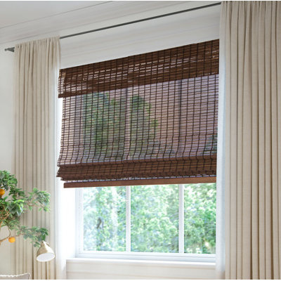 Create an accountWe believe style doesn't have to come at a heavy price. Our bamboo roman shades are a classic window treatment with a durable design and woven wood patterns. Have the freedom to choose a unique and budget-friendly product to create a relaxed vacation home vibe for yours. Living room: Add texture to your interior with our bamboo blinds! Designed as light-filtering window coverings, these shades gently filter light to create a warm and welcoming at-home resort environment. Bedroom: Sleep like you’re on vacation by adding a natural tropical look to your bedroom. Changing your room’s environment with bamboo shades is both eye-catching and rejuvenating. As a blind that offers semi-privacy, we recommend adding a roller shade, or curtain as needed. Dining room: enjoy a meal with great company without the glaring sun rays. UV-blocking window blinds don't compromise the lighting. Office: Create a relaxing environment for your home office. Increase productivity as our durable roll-up bamboo shades complement the lighting in your office without disturbing your workflow. It can be used for inside or outside mount and is true to size. Should not be placed in damp environments and does not offer full privacy.