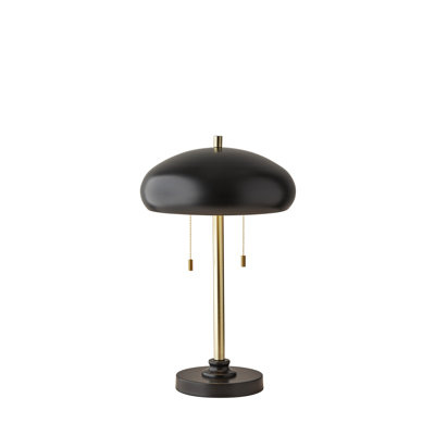 Create an accountAdd a mid-century accent to your bedroom, living room, or office space with the cap table lamp. A black metal dome shade has a brass-painted inside for optimal light reflection. Two sockets each hold a standard 40w bulb, each controlled by its pull chain switch providing 2 brightness settings. Black and antique brass finishes are mixed to create a versatile, modern look.
