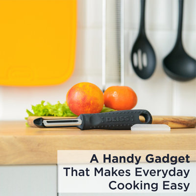 Create an accountProfessional Grade Design with Effortless Peeling of Fruits and Vegetables. You know how ineffective and time-wasting experience it can be to use a paring knife to peel apples, potatoes, and other veggies. Apart from having the struggle to achieve a thin, even cut, they can also be incredibly cumbersome and even dangerous to use. Forget the risk and enjoy fast, efficient, and smooth meal prep with an original premium Vegetable Peeler from Deiss. It is made of a professional-grade design versatile and great for both fruits and vegetables. The stainless steel peeler contains sharp dual blades that effortlessly cut through produce peels and skins. You may not be a professional chef, but when you use our food peelers, you feel like one because of our ergonomic design that provides complete control to your hands while you peel. The dual blades allow our peelers to be safe and comfortable to use by both lefties and righties. When you are finished, just toss it in the dishwasher for a quick and easy clean. The delivery of unsurpassed quality, design, and functionality is our utmost responsibility. Why choose our Vegetable Peeler? - Great for Potatoes, Carrots, Cucumbers, Oranges, Kiwis, Mangos, and Apples - Ergonomic design with Stainless Steel Blade - Non-slip rubber handle to give it a professional feel - Easy to use and Store - Dishwasher safe and easy to clean (no clogging)
