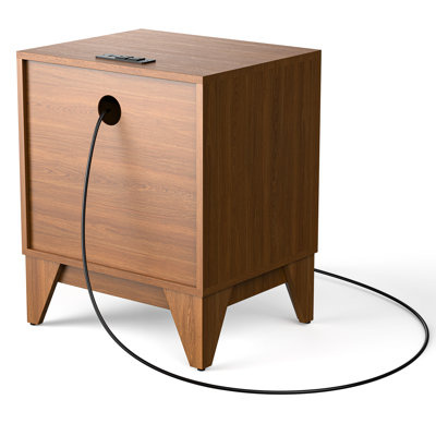 Create an accountElevate your bedroom or guest room with our stunning nightstand, a perfect fusion of modern and rustic design that promises both style and practicality. Crafted from durable MDF engineered wood, flaunts a gorgeous light walnut wood grain laminate finish that seamlessly enhances any decor, and features a distinctive waveform fluted panel drawer that glides on silent metal rollers, allowing effortless access to your nighttime essentials. One of the standout features is the built-in outlet located on the top table, making it incredibly convenient to charge your devices while you sleep. The spacious open cubby is ideal for storing your favorite books or other cherished items. Built to last, our nightstand boasts a warp-resistant frame and solid wood legs with a geometric cut design, ensuring durability without compromising on aesthetics. The finished back adds a polished touch, making it visually appealing from every angle—perfect for placement beside your bed or sofa.