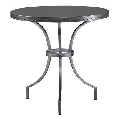 Create an accountWe've got to hand it to end tables: they make great friends for your furniture, and whether drawn up to a sofa or perched between two armchairs, they deliver much-needed surface area in one space-conscious, stylish package. Take this piece, for example, crafted metal, it showcases a circular surface founded on three curving legs for an openwork pedestal look alongside other furniture. Rivet details around the rim of this 24'' H x 24'' W x 24'' D table add an additional industrial touch.