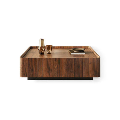Create an accountFrench style full floor standing coffee table, calm atmosphere, full of elegance. Made of high-quality MDF with black walnut veneer, the surface texture of the coffee table is clear, presenting the natural beauty of real logs. Double drawer layout, convenient storage, practical and beautiful. Coffee table with a square concave design, placed in the home, light luxury temperament immediately apparent. The coffee table has a spacious desktop, you can store tableware, tea cups, magazines, and other items. The base of the coffee table is a perimeter plate cabinet legs, made of high-quality carbon steel, stable structure, floor-to-ceiling design, not easy to hide dust, no need to clean. The minimalist design looks like the overall lines are round and smooth, highlighting the sense of three-dimensionality, creating a comfortable and cozy space for life!