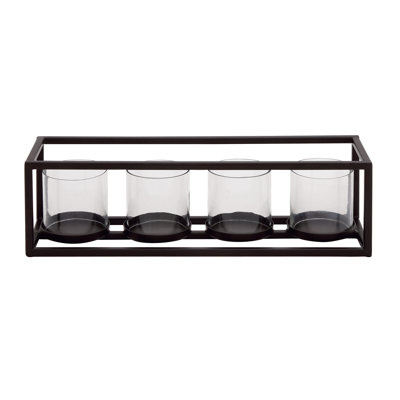 Create an accountDelight your guests and make any occasion extra special by adding a lighted or flameless candle to this lantern. Made with a sturdy base, it is perfect for creating an elegant atmosphere at your table top or mantel. The black candlestick holder adds sophistication to art deco or modern industrial living rooms or dining area. Designed with felt or rubber stoppers at the base that prevent scratching furniture and table tops, as well as sliding around. Can hold 5 votive candles, not included. This item ships in 1 carton. Suitable for indoor use only. This item ships fully assembled in one piece. Made in India. This is a single black colored candlestick holder. Contemporary style.