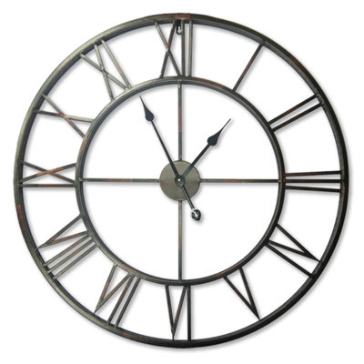 Create an accountThis large-format wall clock combines traditional design elements with a modern flair. It has a cut-out design that allows the colour of your wall or your wallpaper pattern to show through. The clock face includes large Roman numerals.