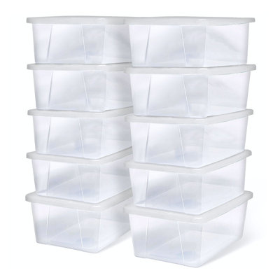 Create an accountHomz Snaplock clear storage container is designed with the user in mind; featuring easy-grip handles for convenient transporting. They are ideal for organizing and storing at home, office, or dorm room. The containers can fit multiple personal or clothing items such as sweaters, bedding, games, or files. The see-through design keeps contents visible. Stack multiple containers on top of one another and save valuable storage space. Made in the USA.