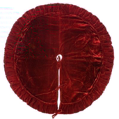 Create an accountVickerman plush velvet Christmas tree skirt. The perfect finishing touch for any Christmas tree, this beautiful tree skirt features an elegant sheen, attached 6" border, self cord detail, it's Fully Lined; has a Tie Closure. This large tree skirt is the perfect finishing touch for any Christmas tree. With a festive holiday red velvet color. This beautiful tree skirt features an elegant that will add a touch of sophistication to your holiday decor. Pair this tree skirt with any tree for a unique holiday look. The attached 6" border on this tree skirt adds a decorative touch to your tree. This tree skirt includes a tie closure, so it stays in its place. Enjoy this expert-designed Tree skirt around your home while creating new memories and celebrating traditions with family and friends this Christmas. For additional complimentary accents see the many wreaths and garlands available from Vickerman. Vickerman has been an industry leader in quality, design and manufacturing since 1940.