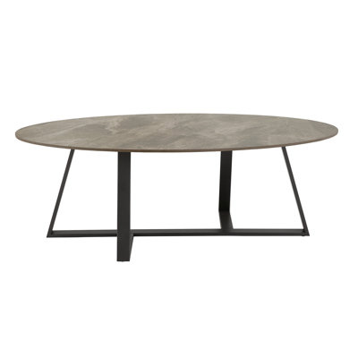 Create an accountWelcome a fusion of classic charm and modern resilience. This round coffee table shows off mixed materials and a mid-century aesthetic. The metal pedestal base consists of four sled legs that form an open silhouette, while a sleek black finish contrasts with the oval-shaped sintered stone top. Measuring 51" wide, this table is ready to support a spread of magazines or your beverage of choice, so that they're within arm's reach as you relax in your living room.