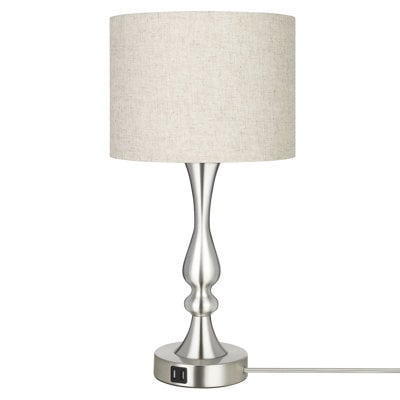 Create an accountThis table lamp gives you plenty of bedside or desktop lighting whenever you need a bit more when you read or finish your to-do list. It has a curved urn-shaped silhouette, and it rests on a circular base that features dual USB ports to charge your phone or laptop. Made from iron with a silver finish, it holds in place a beige linen drum shade. This textured material tempers the light from an included LED bulb. Best of all, you're able to touch the base or pole of this 20.7" tall lamp to turn it on and off or dim the light.