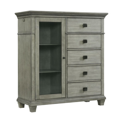 Create an accountEach piece is carefully designed with function and style. Features beautiful, dark square knobs and ball-bearing drawer glides for smooth function. The extendable clothing rod makes getting dressed in the morning a breeze by laying out your clothes the night before. Showcases a clean-lined silhouette for a touch of rustic style.