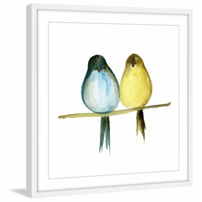 Create an accountThis framed watercolor painting print adds a tranquil feel to your bedroom or living room with its soothing color scheme. Printed, this wall art features a painting titled "Lovebirds" by Lindsay Megahed. It showcases two birds, one blue and one yellow, sitting side by side on a branch. We love how this square artwork blends with decor aesthetics from traditional to modern farmhouses. Plus, it comes with two hooks on the back for easy hanging.