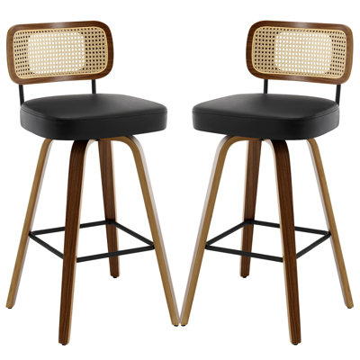 Create an accountElevate your home space with the sophistication of this swivel counter-height bar stool. Crafted with premium PU upholstery and sturdy walnut wood, this counter stool presents a refined silhouette with two leg frame options: full black or brown. The stool’s clean and smooth lines add to its elegant stance, providing comfortable support for up to 300 lbs. In addition, this counter stool is equipped with a 360° swivel function, ensuring flexibility and convenience in any setting. The exquisite walnut texture and elegant design can seamlessly coordinate with any decor style, adding a touch of refinement to your home. Embrace the grace and versatility of this counter stool and create a unique atmosphere in your living space!