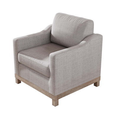 Create an accountPillow-like seating and clean lines make this armchair the ultimate cozy, yet stylish accent piece. The seat rests on a streamlined base with four solid wood legs made from rubber wood. Contrasting the sleek, modern frame is polyester blend upholstery, which is offered in your choice of neutral hue. For added coziness, this chair boasts a foam-filled seat and back cushions with web suspension for added support. Simple, timeless, and modern, this armchair has a versatile look that's made to outlast changing seasons and changing trends.
