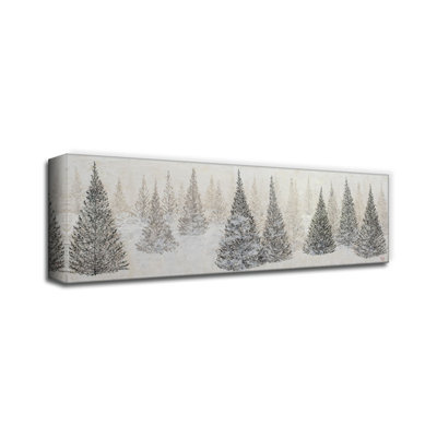 Create an accountA snow-covered wonderland. This painting print brings a cozy, wintry feel to any room in your home. Reproduced from an original work by Karen Biery, it features a peaceful field of snow-covered evergreens. This rectangular oil painting is printed on canvas and wrapped around a kiln-dried pine wood frame for a gallery-worthy display. Plus, wall-mounting hardware is included for hassle-free hanging out of the box. Hand-curated by Kelly Clarkson.