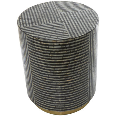 Create an accountAdd a glam touch to your living room or office with this end table. With a clean-lined drum shape made from engineered wood, this table showcases a dynamic look with carved striped sides in ivory and black. It rests on a luminous gold-finished base that provides stability while maintaining its sleek appearance. The table has a weight capacity of 100 lbs, making it ideal for displaying a lamp, vase, or decorative accents. Measuring nearly 18'' wide, it fits effortlessly into smaller spaces or beside your favorite armchair. Add this stylish piece to your home for an instant upgrade.