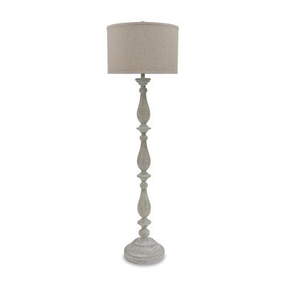 Create an accountWhen your ensemble is in need of a little illumination, you might be tempted to install a hardwired luminary or spring for an end table and a lamp to go with it. The easiest solution? A floor lamp! Take this one for example: the perfect pick for any French country cottage-inspired aesthetic, it showcases a traditional silhouette and boasts a lightly distressed white finish. It’s crafted from cast resin and features a fabric drum shade in cream coloring.