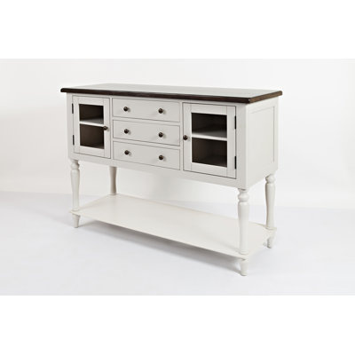 Create an accountA striking pairing of a rich, dark top with a soft gray base, this Olavo Buffet Table provides an inviting stage for entertaining. This buffet table was made for dinner parties and family dinners. Solid wood construction offers the promise to withstand the wear and tear of those same dinners and look great doing it.