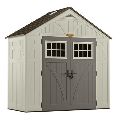 Create an accountThis shed makes essential organization simple. It features a reinforced floor to support tractors and other large items, and can easily house all your tools, outdoor supplies, and more. The multi-wall resin exterior is built for superior durability. Additional features include six skylights to bring in natural light, two corner shelves that can be used in eight different locations, and metal, lockable handles to keep your valuables safe and secure. Sturdy yet stylish, this product stands up to the elements and complements any environment. From organizing everyday accessories to storing large equipment and more, this durable and dependable shed covers all the essentials with ease. Features include steel-reinforced resin construction for superior strength and stability, reinforced floor for heavier items, and pad-lockable metal lever handles to keep contents safe.