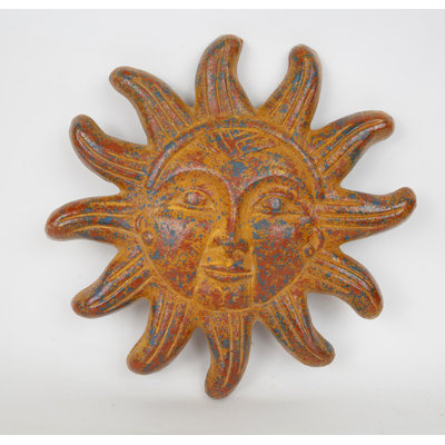 Create an accountThis garden art piece brings a cheerful celestial touch to your outdoor sanctuary or indoor entryway. Its frame is made from stone with a textured finish that highlights a smiling sun design. It is hand-painted with intentional distressing that gives it a weathered look, as if it has been part of your garden for years. This piece features stylized rays radiating from a central face to create a striking silhouette against any surface. Plus, this garden art arrives ready to hang with the included wall-mounting hardware.