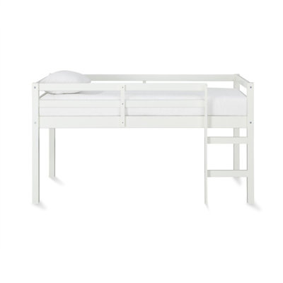 Create an accountEncourage your child's creative side with the pleasant and playful layout of the Schlemmer Junior Twin Loft Bed. Our kids' bed brings a contemporary look that draws attention to its clean lines, horizontal paneling, and space-saving modern shape easily fitting into any boys' or girls' decor. The bed's low-profile height ensures safe access to the top bunk at bedtime, combined with an area below that can be used for storage, reading, building a fort, or whatever childhood imaginations can dream up. Perfect for small spaces, the Milton features a solid pine wood frame, an easy-to-climb stepladder and full-length guardrails for additional protection. Delivering 'Mission'-inspired design to your kid's bedroom or guest room, it checks off all the style and safety boxes. Plus, straight wooden bed slats offer complete support for your kid's 6-inch-thick twin-size spring mattress (not included) without a box spring. Children must be at least 4 years old to use the top bunk.