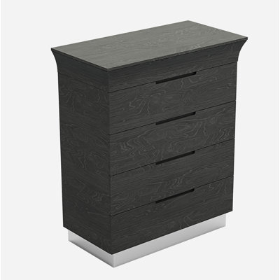 Create an accountThis 5 Drawer Chest has a beautiful smoky essence with swirls of gray walnut high gloss. This product has a beautiful high gloss finish with stainless steel accents.