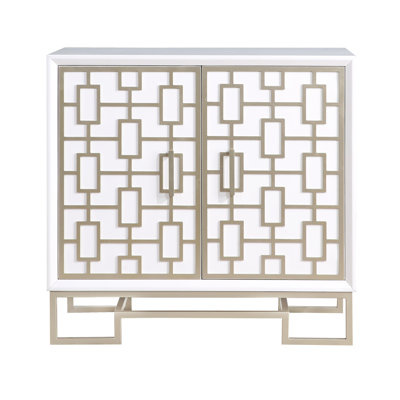 Create an accountThe dreamy champagne lights effect is simply intoxicating! Elegant linear lines define the body, but it is the intricate design that overlays the two doors that catches your eye, for they change as the light touches the silvery metallic, subtle yet oh so breathtaking! With an angled metal base that compliments the total design - not to mention the spacious shelved interior - this cabinet is destined to be a much appreciated focal point for your decor!