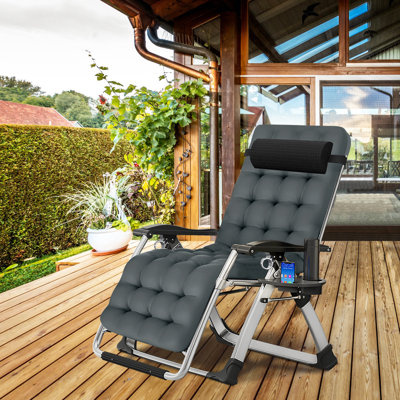Create an accountZero Gravity Chair come with 2 Sided Cushion, it has an adjustable design that can be adjusted from 90 to 170-degree angle. This amazing feature helps you select the optimal angle that brings you to a comfortable, relaxing position. Simply push the clip to unlock the position, and pull the clip back to secure it at your desired position. Our Zero Gravity Chair supports up to 440 lbs. The steel pipe is thickened, so that the chair does not shake or collapse, and the bearing capacity is greater and safer. Upgrading the fabric to make sleep more comfortable.The soft cushion adds extra comfort. but can also be removed for breathability for summertime. Additionally, lounge chair is very easy to install and can be easily folded, for easier storage and handling.Whether you want to relax by reading a book or take a quick break, this comfortable chair is the ideal solution.