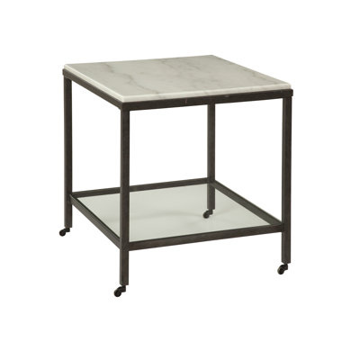 Create an accountThe Whitman Square End Table features a striking contrast between bronze and ivory marble. The solid stone tops rests on a steel base and features piano casters for added functionality. This square end table is accented with a clear glass shelf for extra storage.