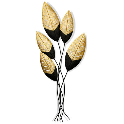 Create an accountArt Deco inspiration brings this Black and Gold Metal Wall Sculpture to life. Made using finished metal in bold black and gold tones, each leaf has cut out detailing and indentations to add texture to any wall. It's a smart finishing touch for a variety of uses, from vanity tables and bath areas to living rooms and beyond.