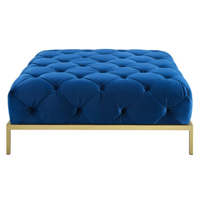 Create an accountElevate your living room with this generously sized cocktail ottoman, designed to make a big impact. Built on a metal frame and four legs with a gold finish, it features a square silhouette and a plush, luxe looks that's right at home in refined aesthetics. It's filled with foam and wrapped in velvet upholstery for an eye-catching look, while deep button tufting all over creates a welcoming texture. This piece measures 41.7'' square, so it works as an extra seat for unexpected guests or as an ottoman table when you top it off with a decorative tray.