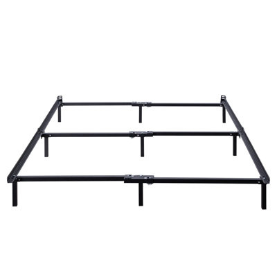 Create an accountAnchor your mattress in your master suite or guest room with this low-profile bed frame. Crafted from heavy-duty steel in a powder-coated finish, this bed frame strikes a simple rectangular silhouette. A series of metal slats accommodate your memory foam, latex, or traditional spring mattress (sold separately), while short legs create just enough clearance for convenient under-bed storage. This frame is designed to easily attach to your own standard-sized headboard using predrilled holes in two of the legs.